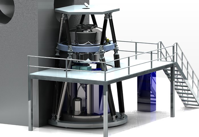 Unterstützung für die Instrumente: Zwei riesige Plattformen, die auf jeder Seite des Teleskops angebracht sind, werden die vier ersten Instrumente des ELT tragen.