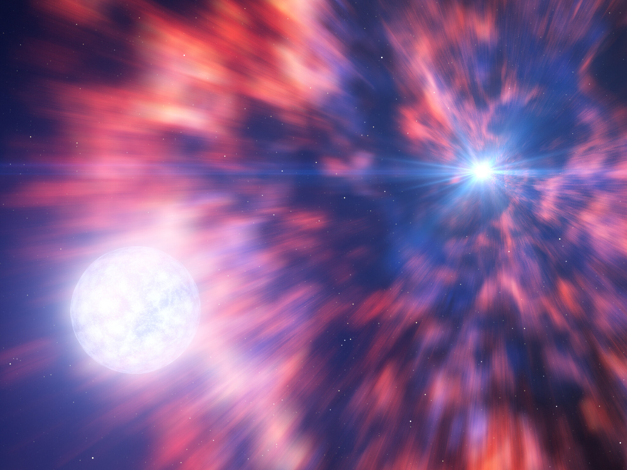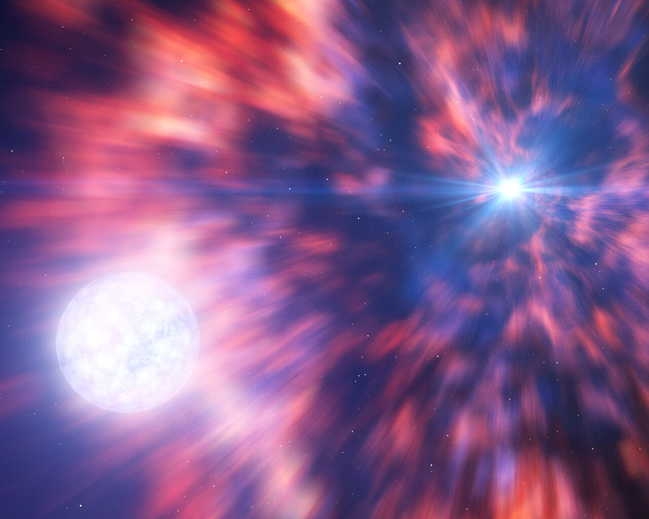 This artist’s impression is based on the aftermath of a supernova explosion as seen by two teams of astronomers with both ESO’s Very Large Telescope (VLT) and ESO’s New Technology Telescope (NTT). The supernova observed, SN 2022jli, occurred when a massive star died in a fiery explosion, leaving behind a compact object — a neutron star or a black hole. This dying star, however, had a companion which was able to survive this violent event. The periodic interactions between the compact object and its companion left periodic signals in the data, which revealed that the supernova explosion had indeed resulted in a compact object.
