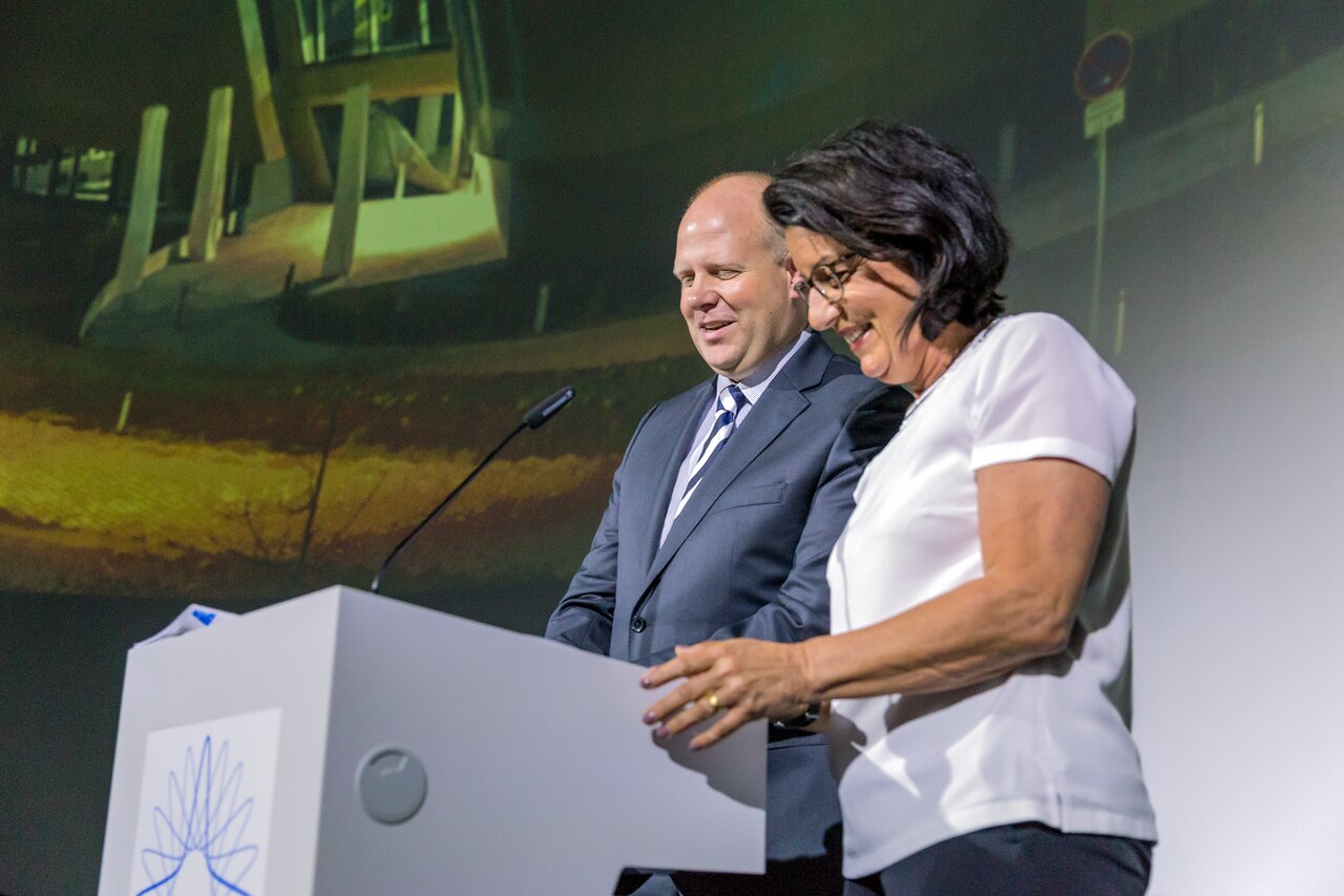 Harald Tschira, son of Klaus Tschira, and Beate Spiegel, Managing Director of the Klaus Tschira Stiftung, address the guests.